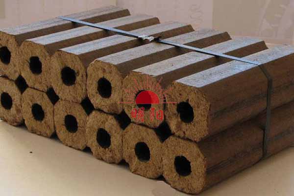 在螺旋推進器與加熱圈的作用下形成高溫高壓區(qū),將松散的原材料加工成空心棒體。該產(chǎn)品具有密度大、體積小、可燃性好,可替代薪柴及燃煤。一般產(chǎn)品外徑為 50-60mm ,孔徑為 15-20mm ,呈空心四角或六角柱形。也可制成球形、顆粒形、蜂窩煤形。